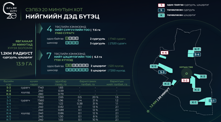 “Сэлбэ 20 минутын хот” төсөл хэрэгжсэнээр иргэдийн өдөр тутмын хэрэгцээг ойр орчноосоо хангах боломж бүрдэж, цаг хугацаа, зардал хэмнэгдэхийн зэрэгцээ амьдралын чанар мэдэгдэхүйц сайжрах ач холбогдолтой гэж нийслэлийн албаныхан мэдээлсээр ирсэн.